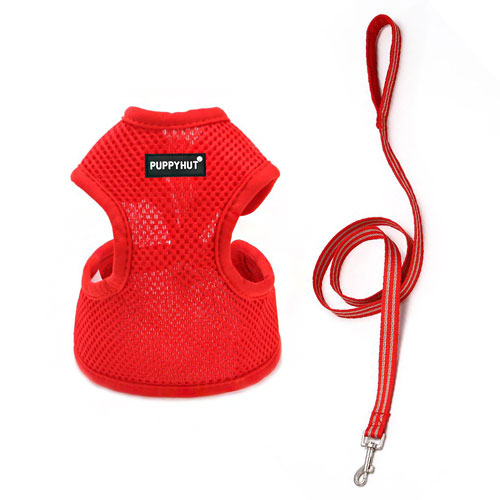 퍼피헛 간편착용 하네스 셋트 (레드)